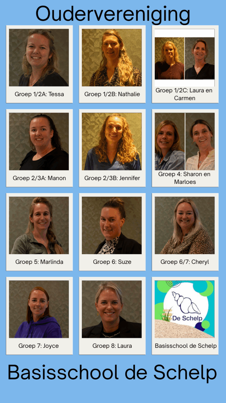 De oudervereniging ondersteunt de school bij het organiseren van leuke evenementen voor de kinderen, waaronder het sinterklaasfeest, de Kerstviering, schoolreis en kamp, het juffenfeest en Sint-maarten.